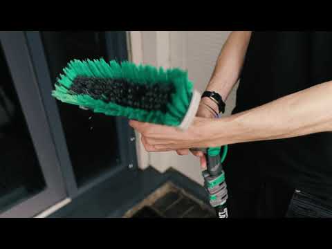 Pure water is the fastest and most efficient way to clan outdoor glass surfaces and Unger's lightweight and rigid nLITE® Carbon waterfed poles keep workers safe on the ground.